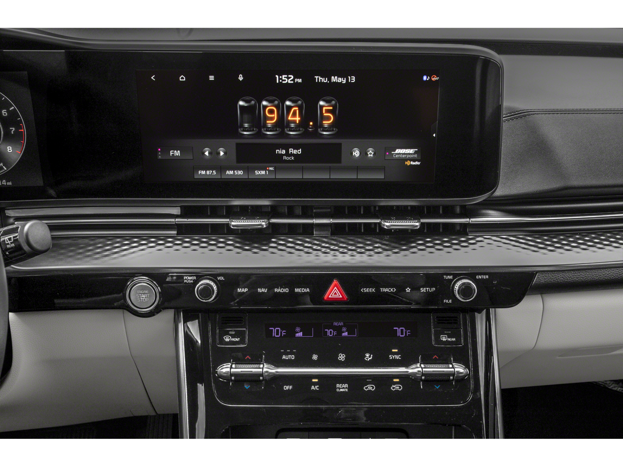 - Radio: AM/FM/HD Audio System -inc: Bose premium audio w/12 speakers including subwoofer, external amp, 12.3" audio display, navigation, Android Auto and Apple CarPlay, SiriusXM, Bluetooth®, modem, USB connectivity and WiFi hotspot