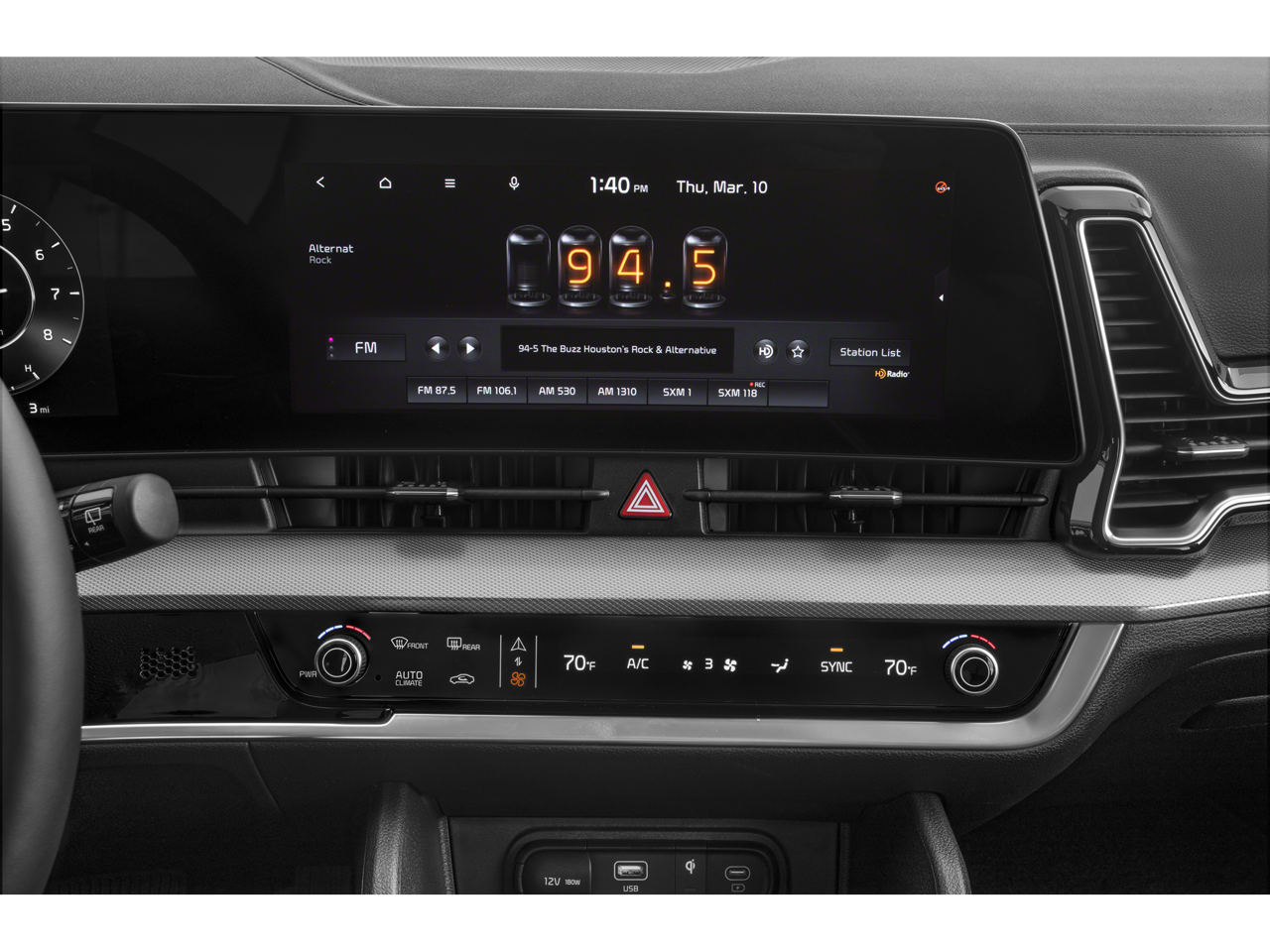 - Radio: AM/FM/HD Audio System -inc: 12.3" touchscreen w/navigation, 400 W w/HALOsonic harman/kardon sound system, 8 speakers, Apple Carplay and Android Auto, Kia Connect, voice recognition, WiFi, map OTA, satellite radio, steering wheel mounted audio controls and Bluetooth phone and streaming audio