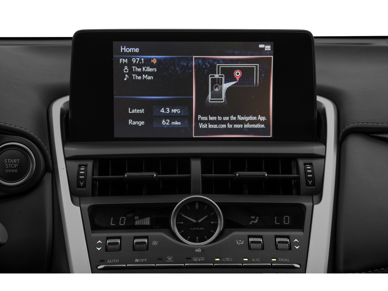 - Radio: AM/FM/CD Lexus Display Audio -inc: 8 speakers, Bluetooth® audio streaming from compatible devices and hands free w/improved voice recognition, full digital power amplifier (class D), integrated SiriusXM Satellite Radio receiver (90-day All-Access trial subscription included), Scout GPS link, USB/iPod control, home screen can be divided into 1-3 sections (customizable - HVAC, audio, navigation), 8" multimedia screen, enhanced second generation Remote Touch Interface (RTI) w/30 percent larger touchpad, Enform Service Connect w/one-year trial period extended to complimentary for the first 10 years of ownership, my traffic routes; preset frequently, MID data sharing; content from headunit displayed in MID (e.g, song information, NAV turn by turn directions, call info.), dynamic voice recognition, one-shot address entry, embedded voice recognition w/off-board cloud-based service, steering wheel control of onboard/offboard voice recognition, voice recognition guidance level w/ability to choose voice prompt level (High/Low/Off), hint screens, Cache Radio w/ability to pause live AM/FM/HD Radio, hybrid data service, traffic and weather data provided via HD Radio (free to all users while in HD Radio range), basic traffic maps, weather forecast and Siri Eyes Free mode (iPhone 4S and later)